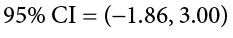 Remember that the confidence interval represents a range of values that seem plausible or reasonable based on our observed data. The interval spans −1.86 to 3.00, which includes 0, our null hypothesis value. Because the null hypothesis value is in the interval, it is considered a reasonable value, and because it is a reasonable value, we have no evidence against it. We fail to reject the null hypothesis.