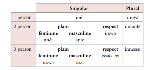 - Describe that pronoun system, and explain how this pronoun system differs from the English one (you may want to create a table to do that)